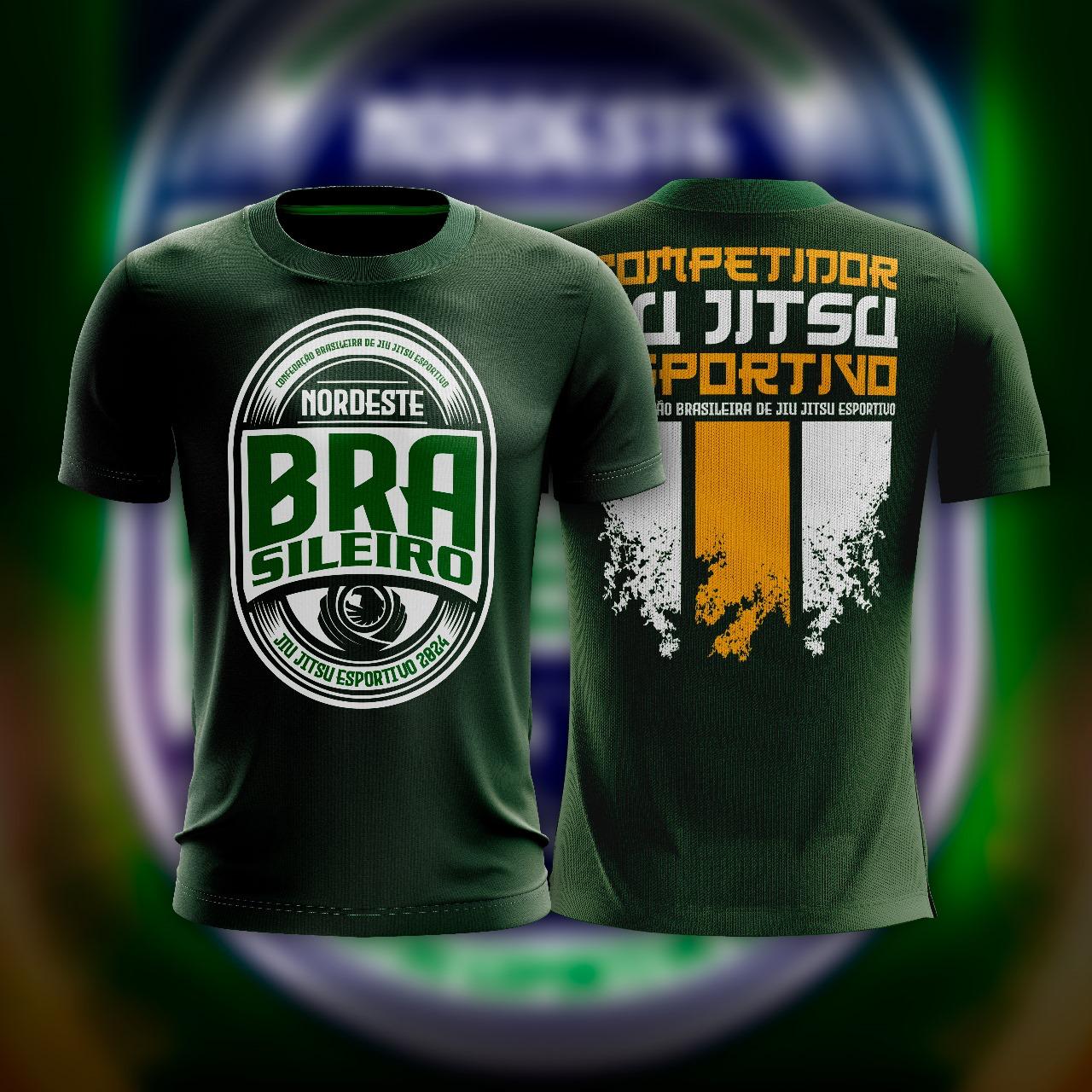 Rash guard com cor predominante da faixa que o atleta está disputando.
