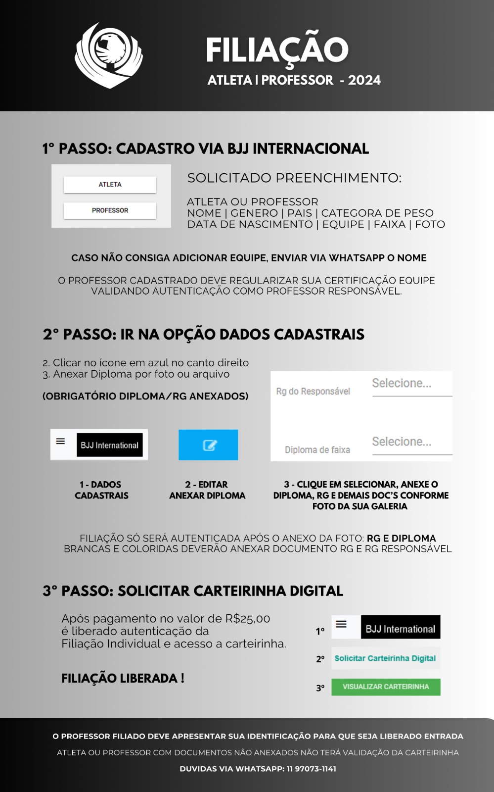 * Filiar e levar Carteirinha Digital Impressa ou via acesso BJJ Internacional