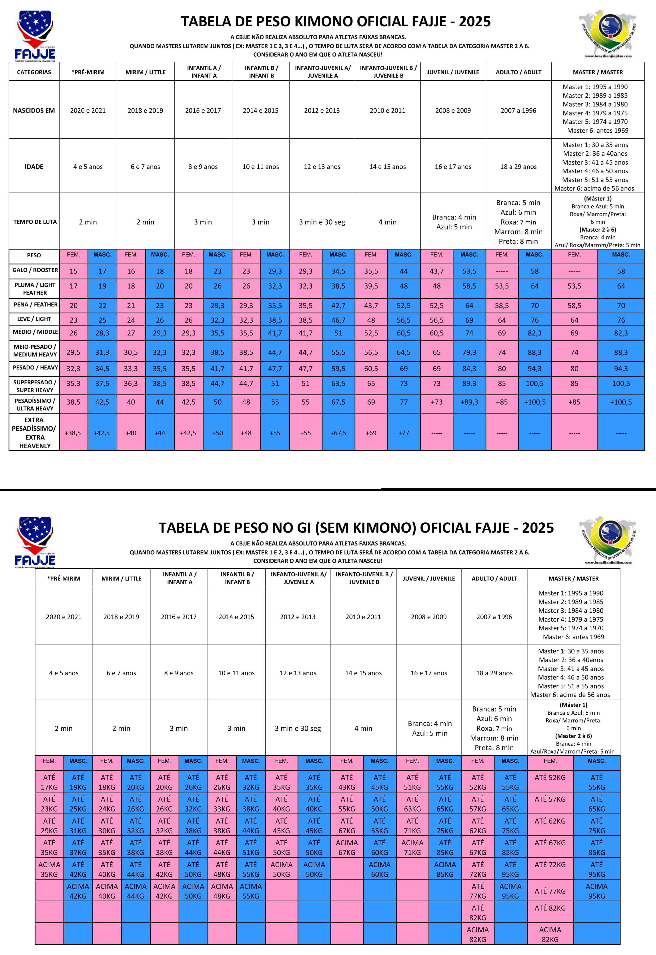 *Conforme a regra oficial NÃO HÁ TOLERÂNCIA DE PESO, o atleta que irá lutar e também o campeão direto, sobe apenas 1 vez na balança para a pesagem oficial, não podendo pesar novamente, ou trocar de kimono, ou faixa, ou qualquer vestimenta e qualquer outro questionamento.
